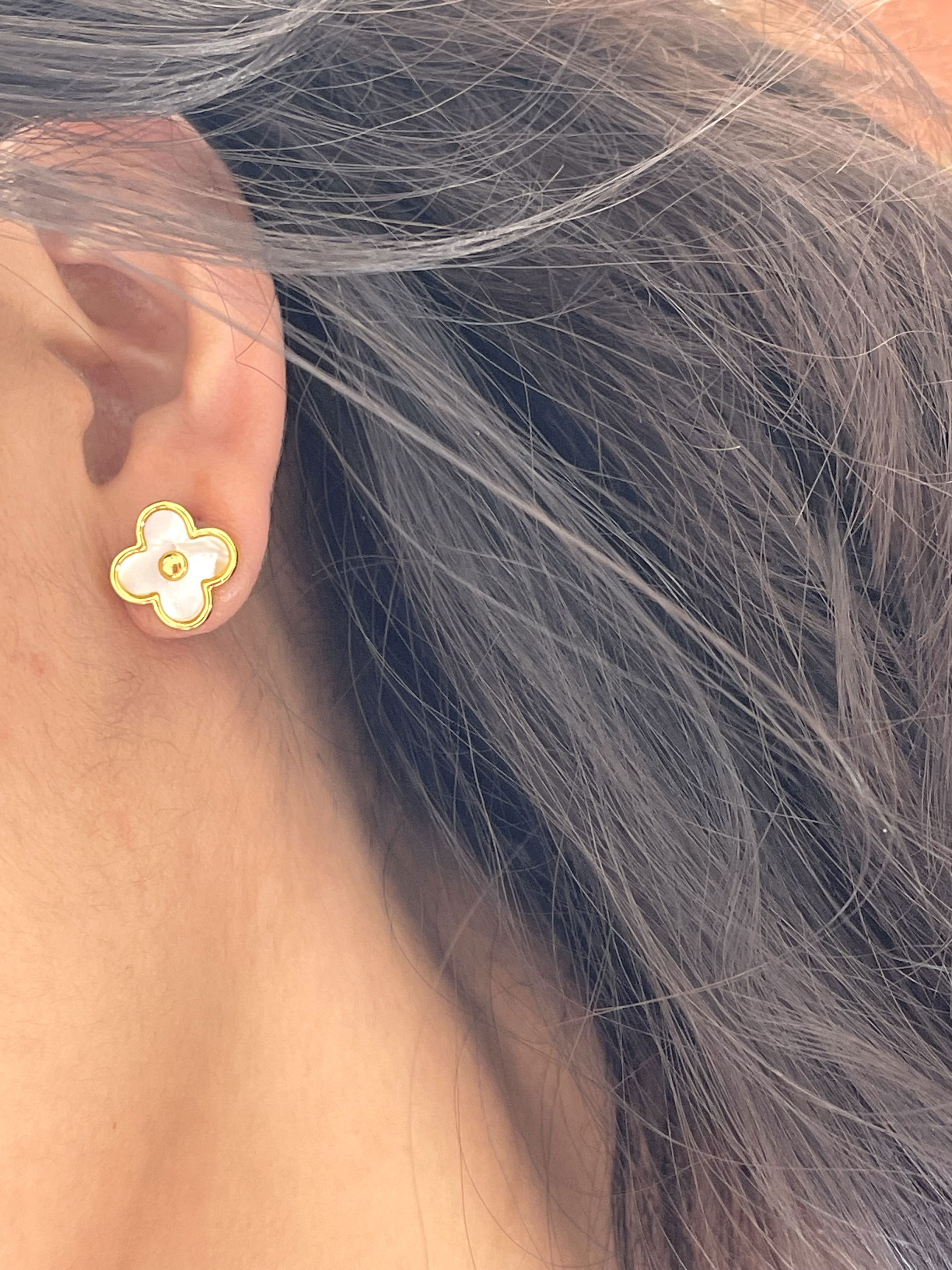 Aros pasantes en forma de flor cln esmaltado con dorado .