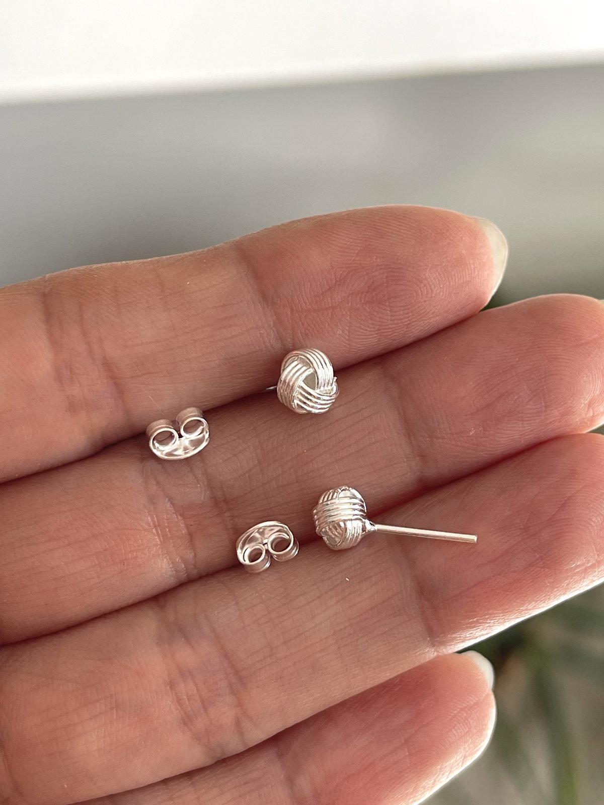Aros pasantes en forma de bolitas nudos de 4 hilos .