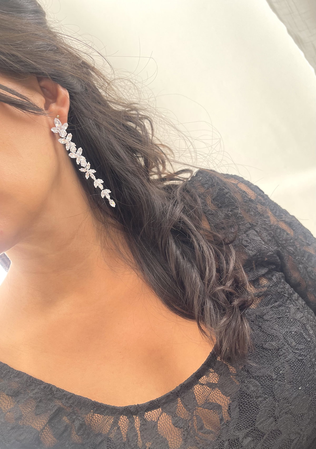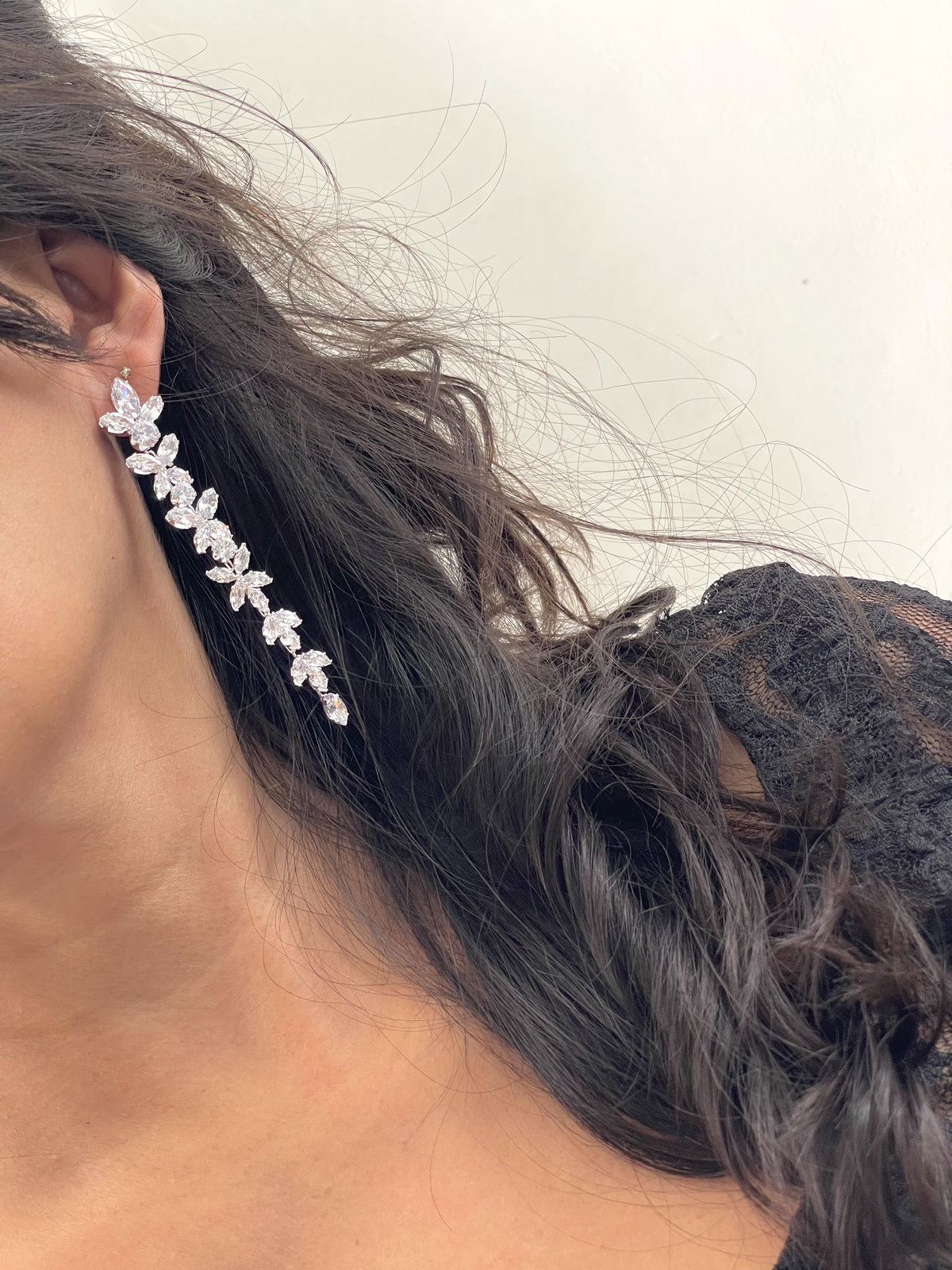 Aros pasantes de cristales en formas de flores unidas . Largo total 9 cm
