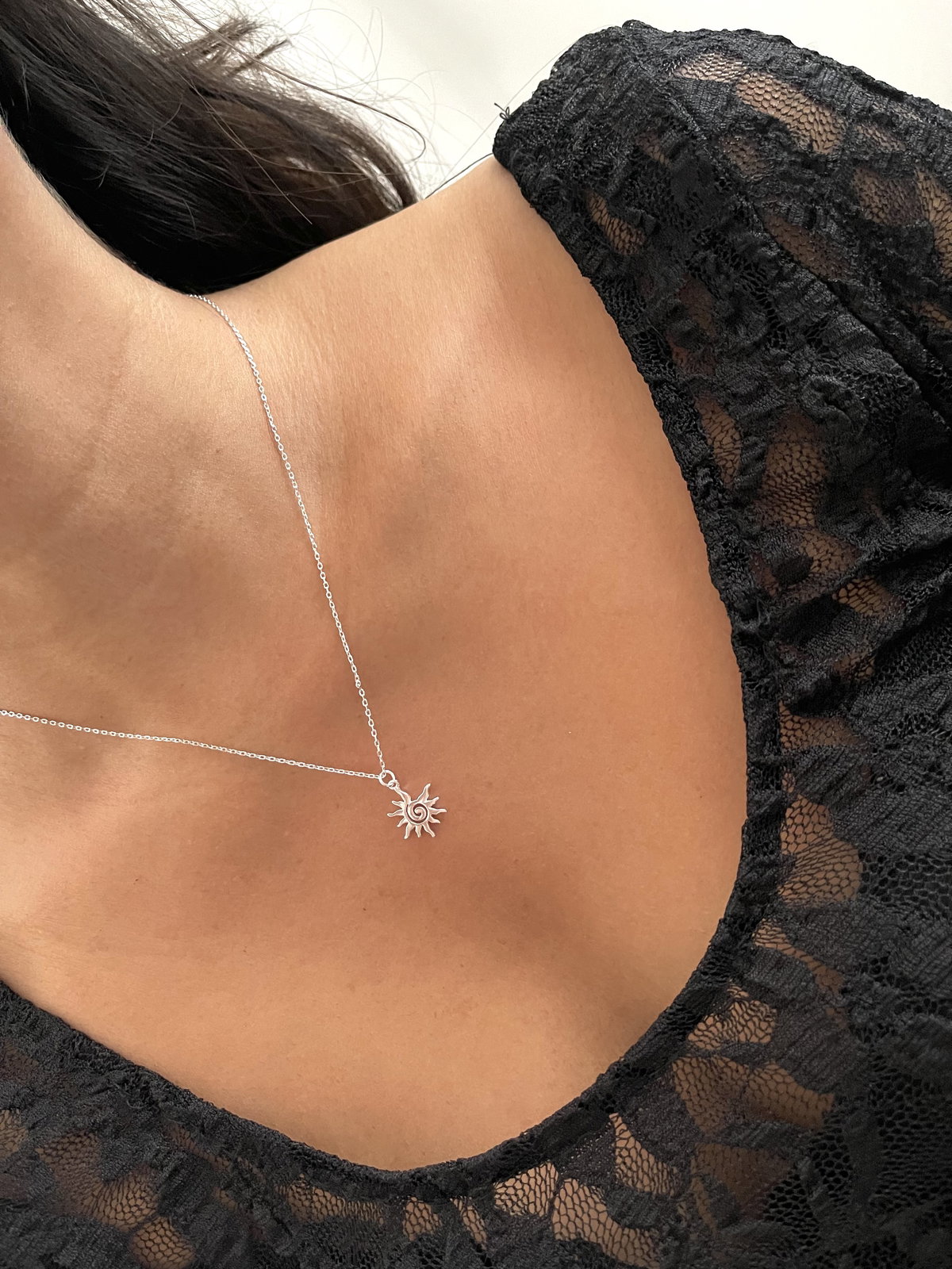 Conjunto de cadena y dije en forma de sol espiral de 42 cm +3 cm de extensor .