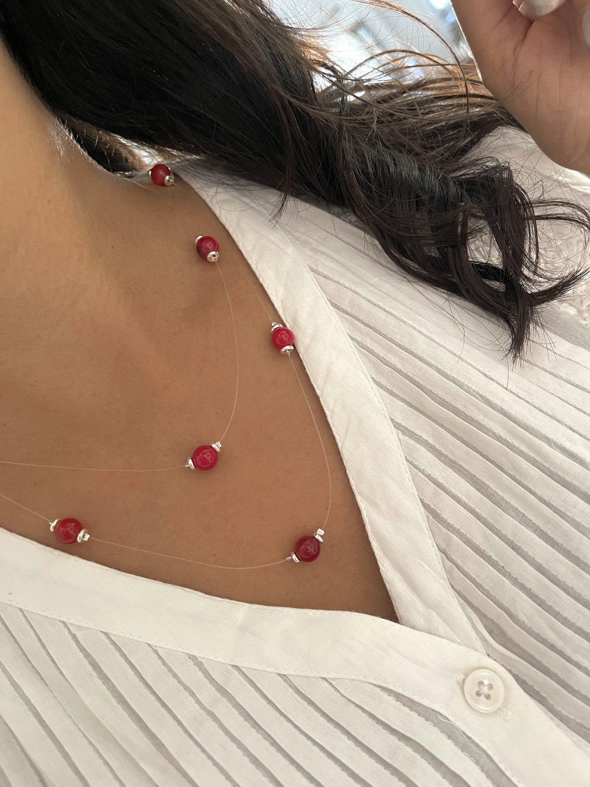 Collar invisible con tanza fornituras de plata 925 7 bolas de AGATA de fuego .