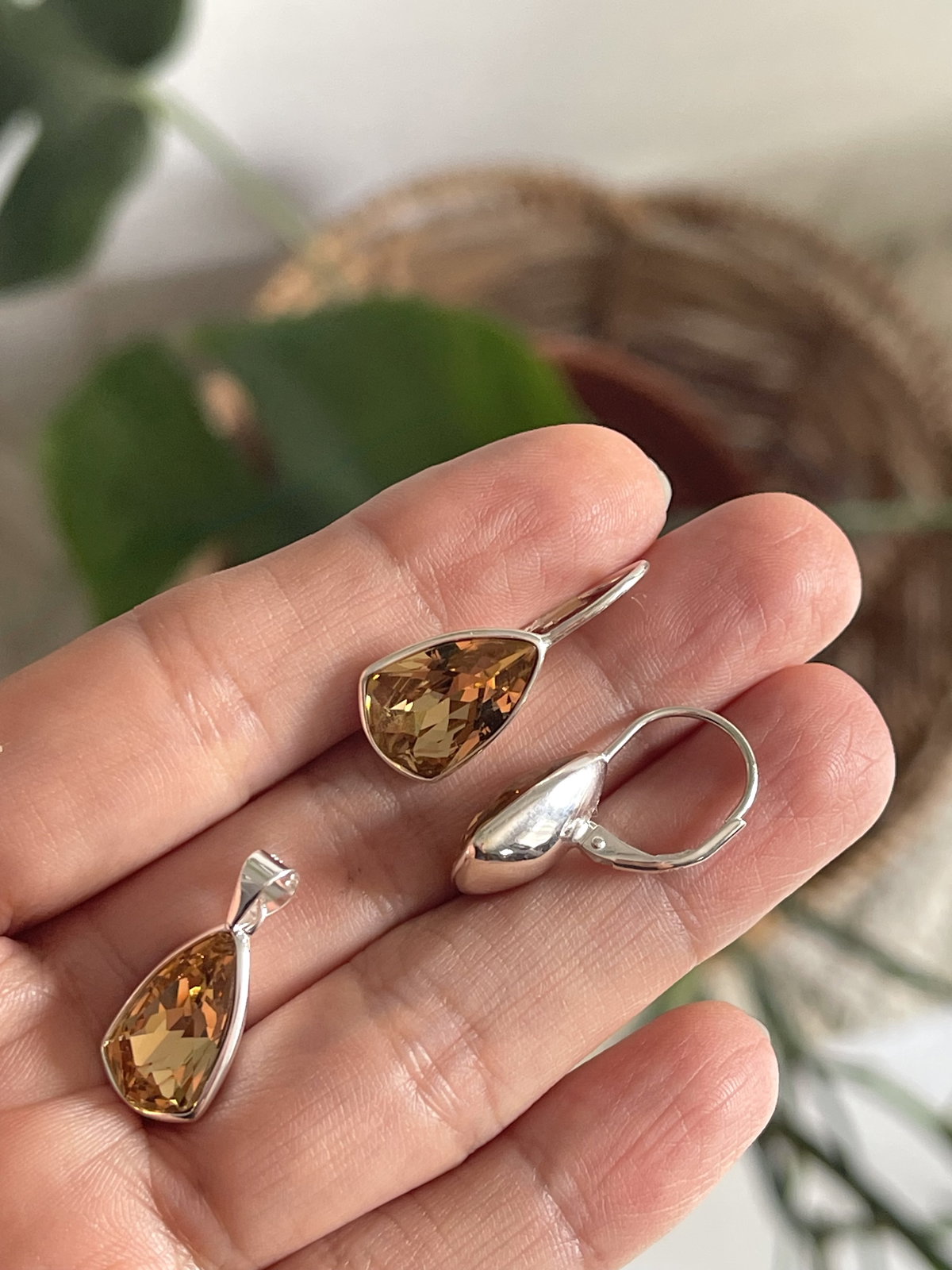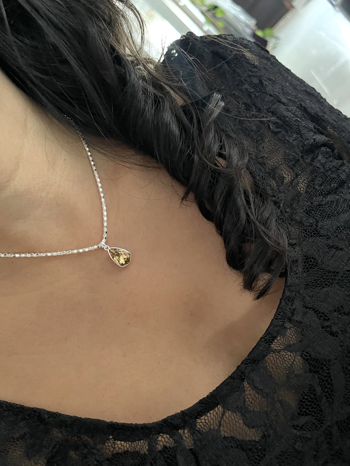 Dije en forma de pera cristal zirconia color miel . Peso :1,9 grs