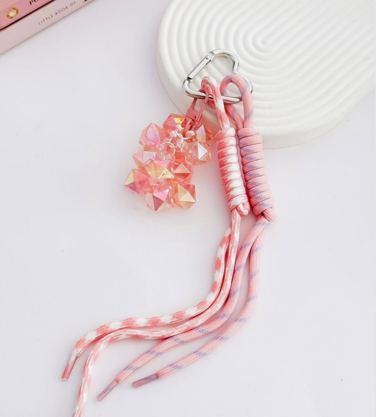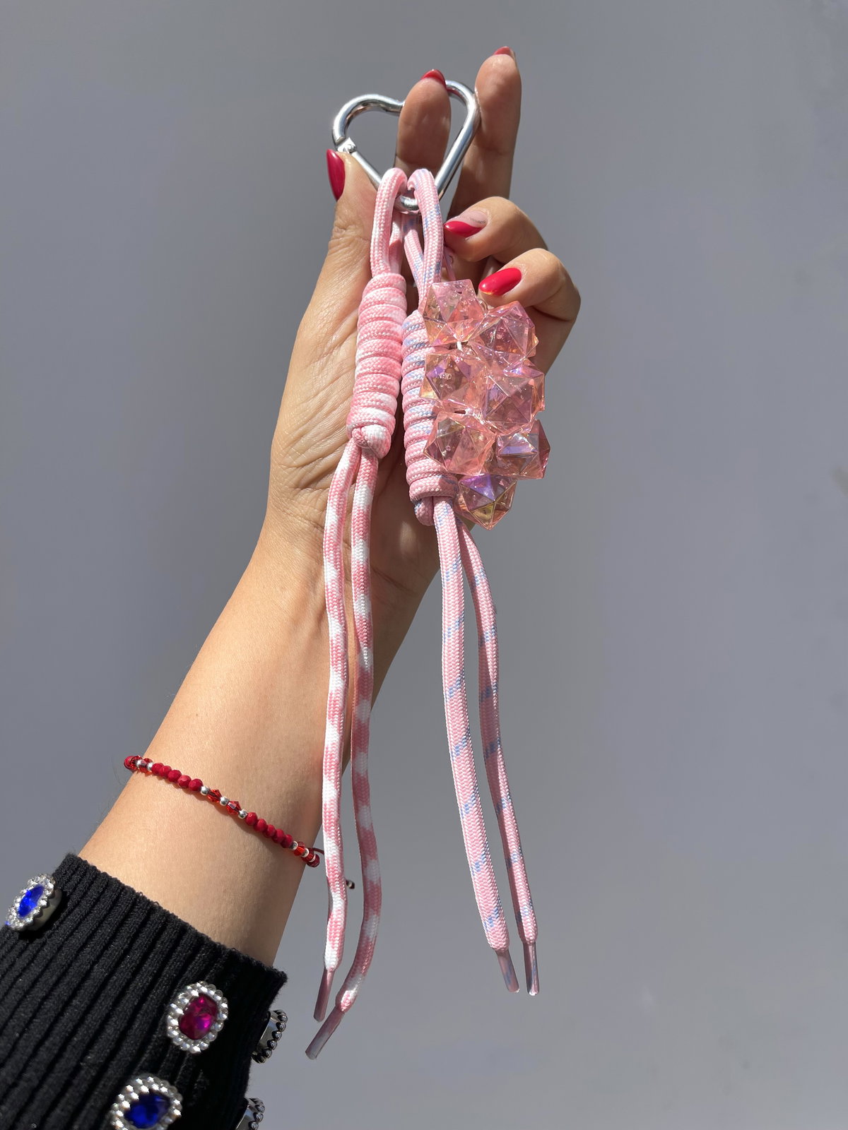 Bag Charms llavero racimo de cubos tornasol rosa y cordones al tono