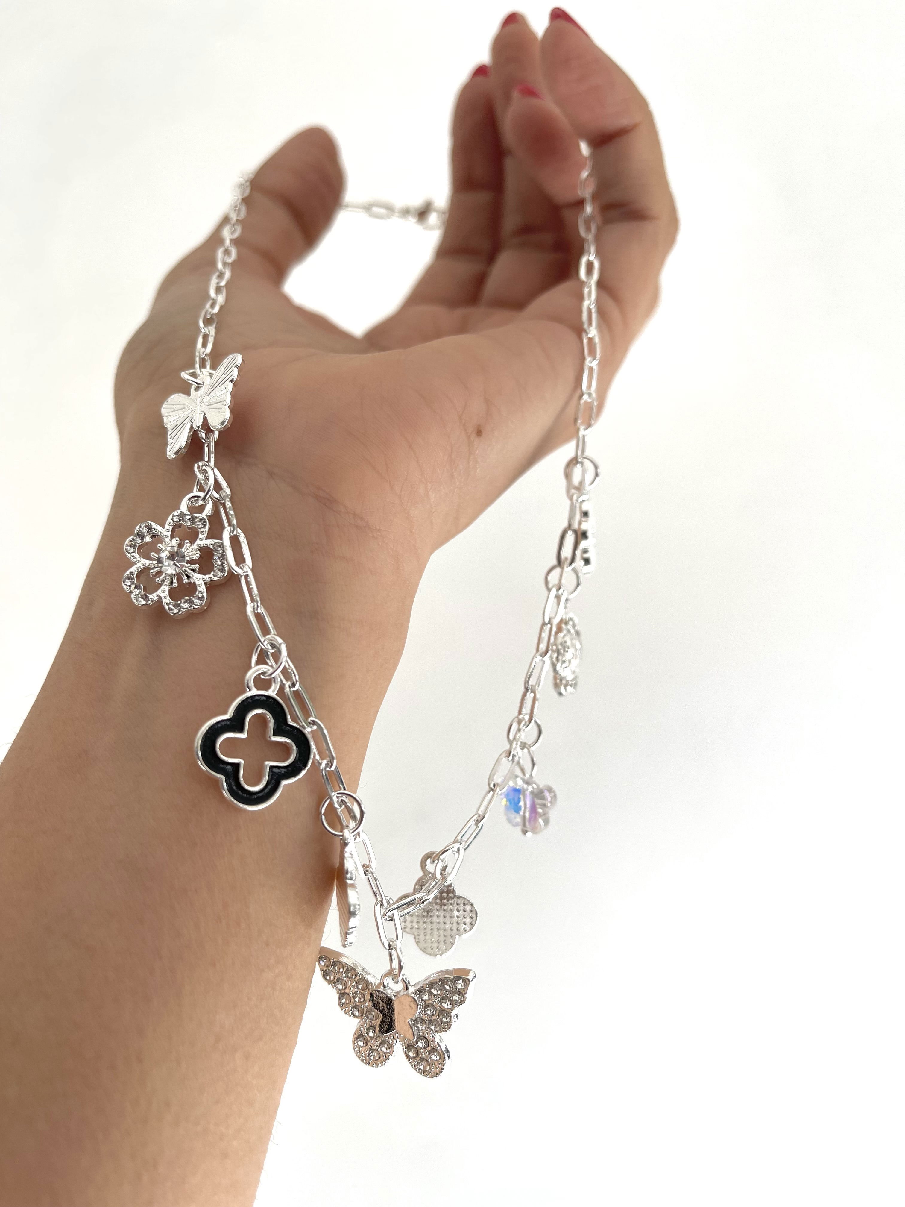 Dijes de mariposas y trébol . medidas : 42cm +5 cm extensor