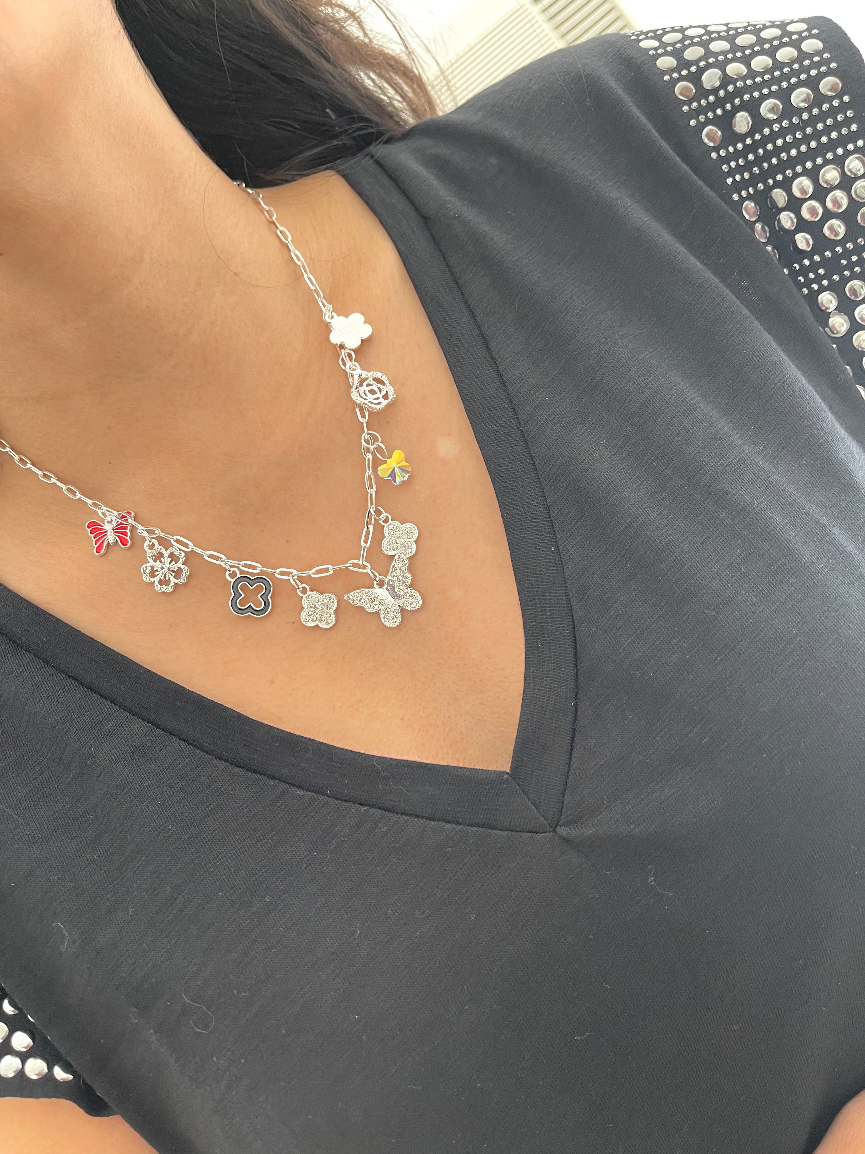 Collar cadena forcet con multidijes esmaltados con micropave y cristal simil sw