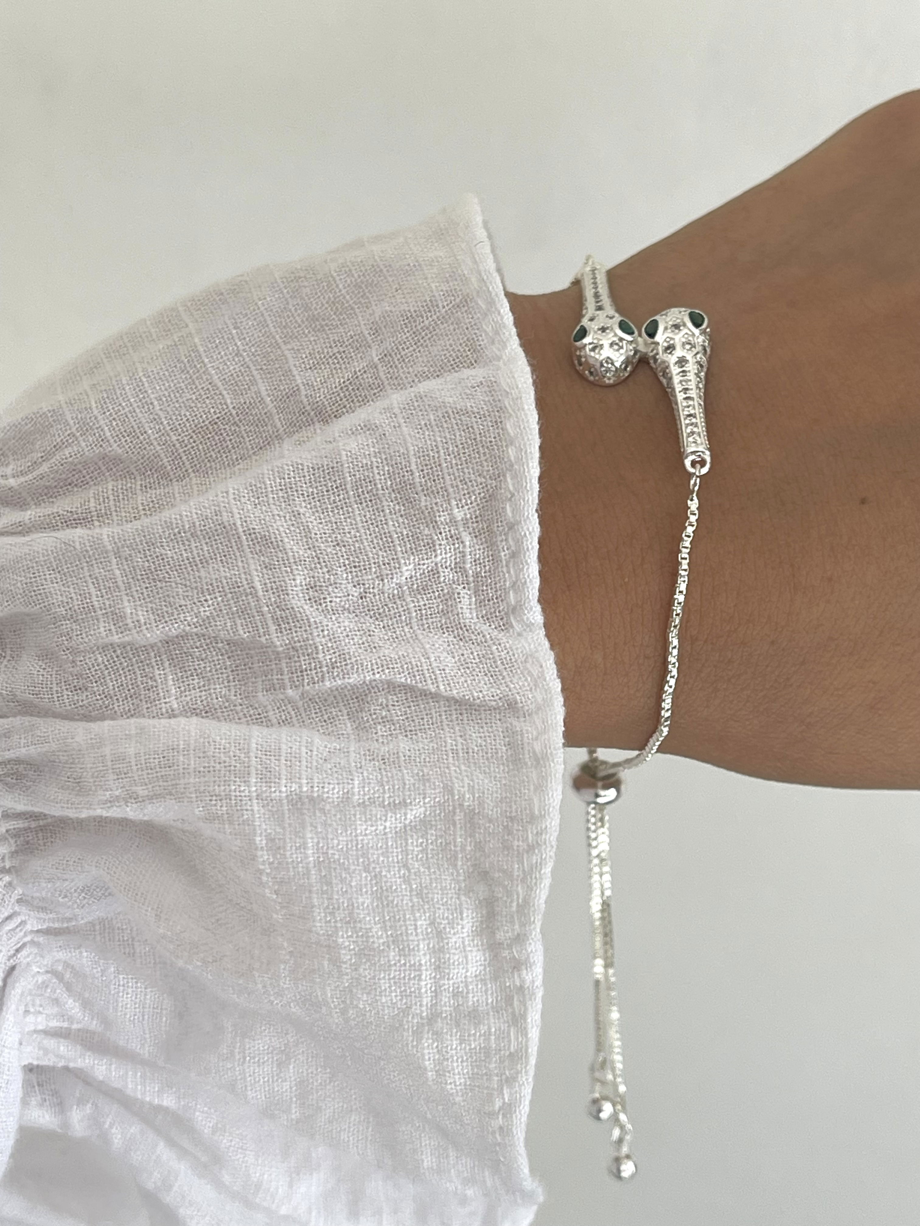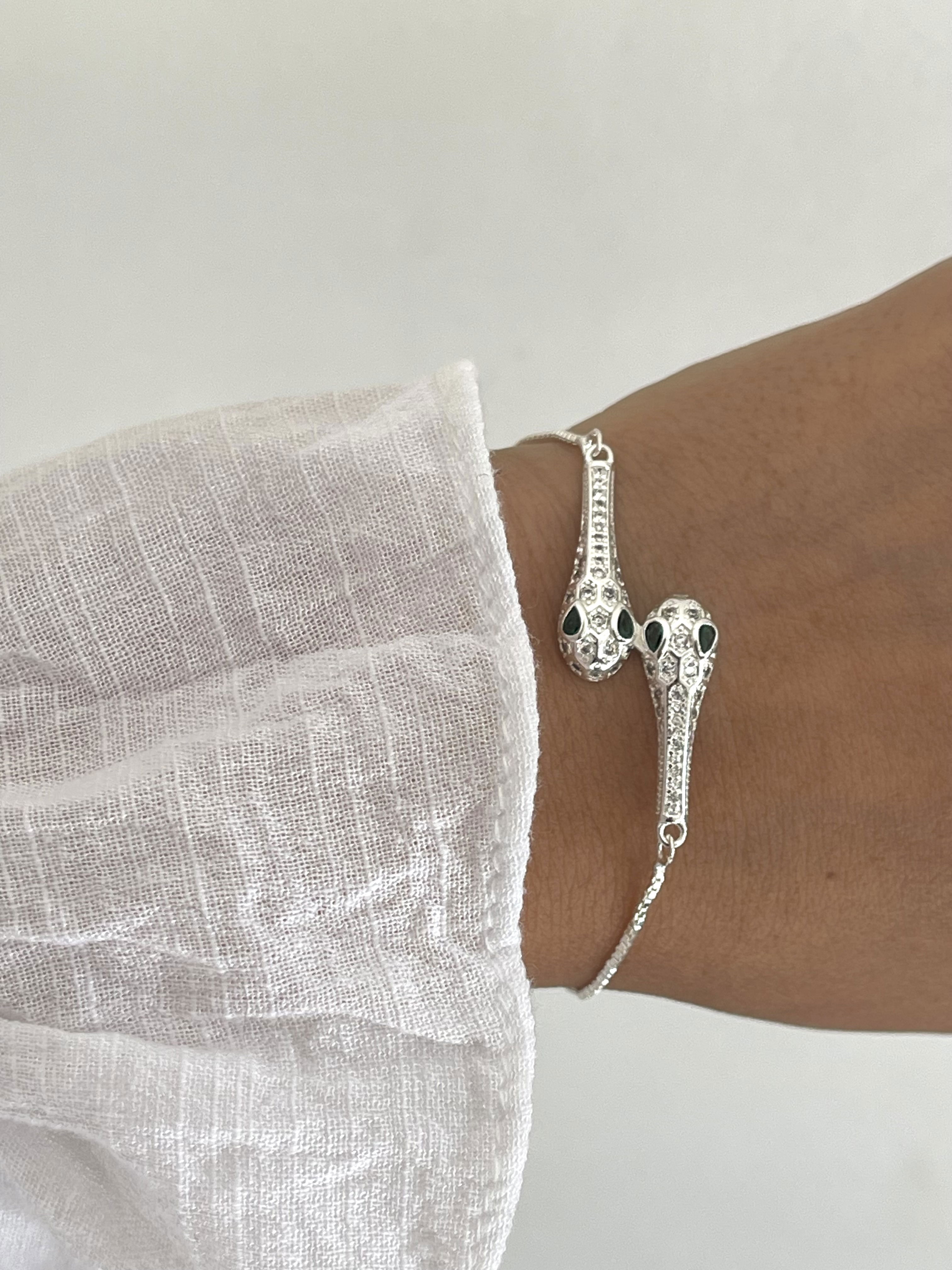 Pulsera dos serpientes conl micropave y cierre siliconado