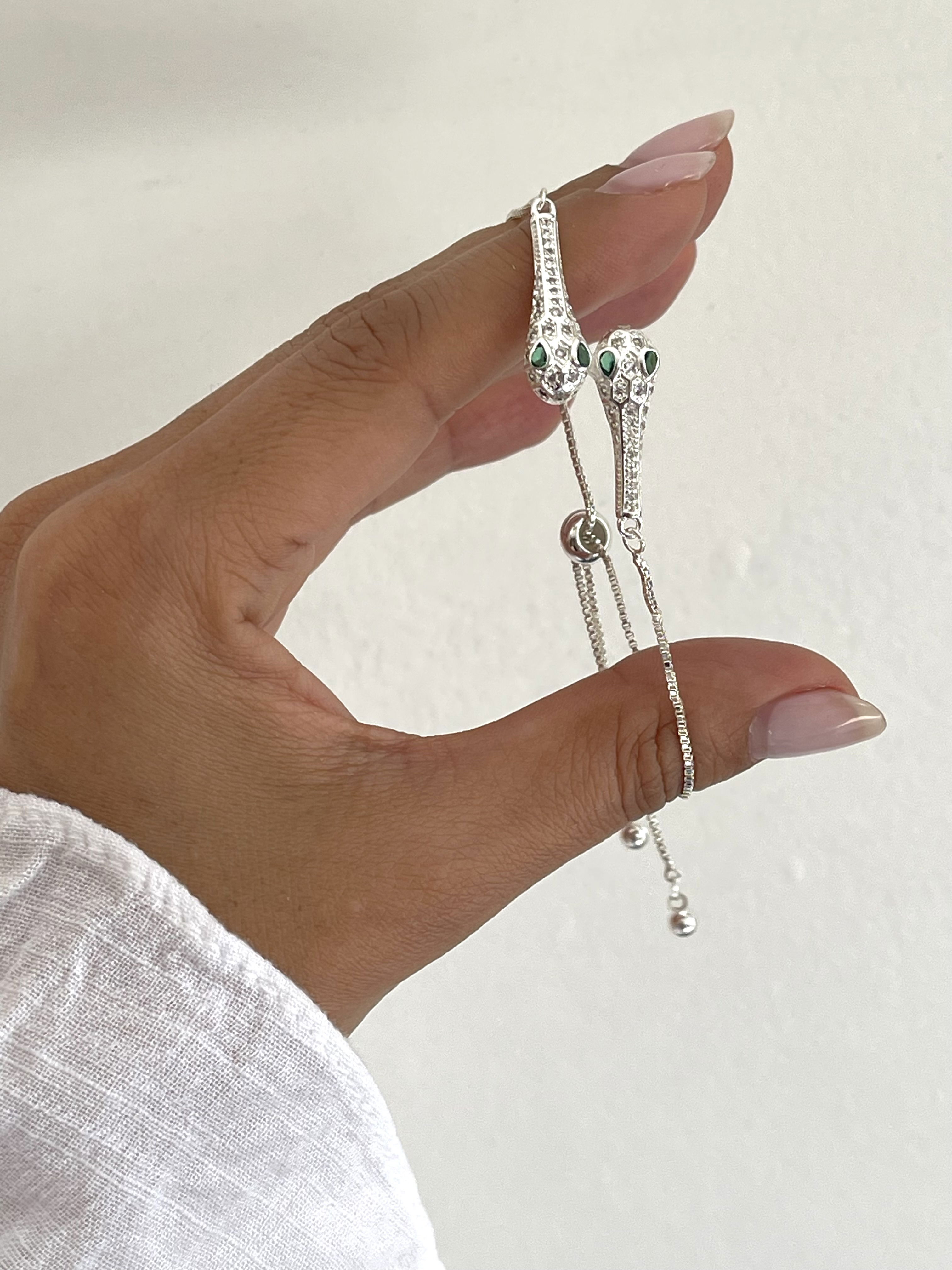 Pulsera cadena veneciana con dos serpientes con micropave y cierre solicitado . Ajustable .