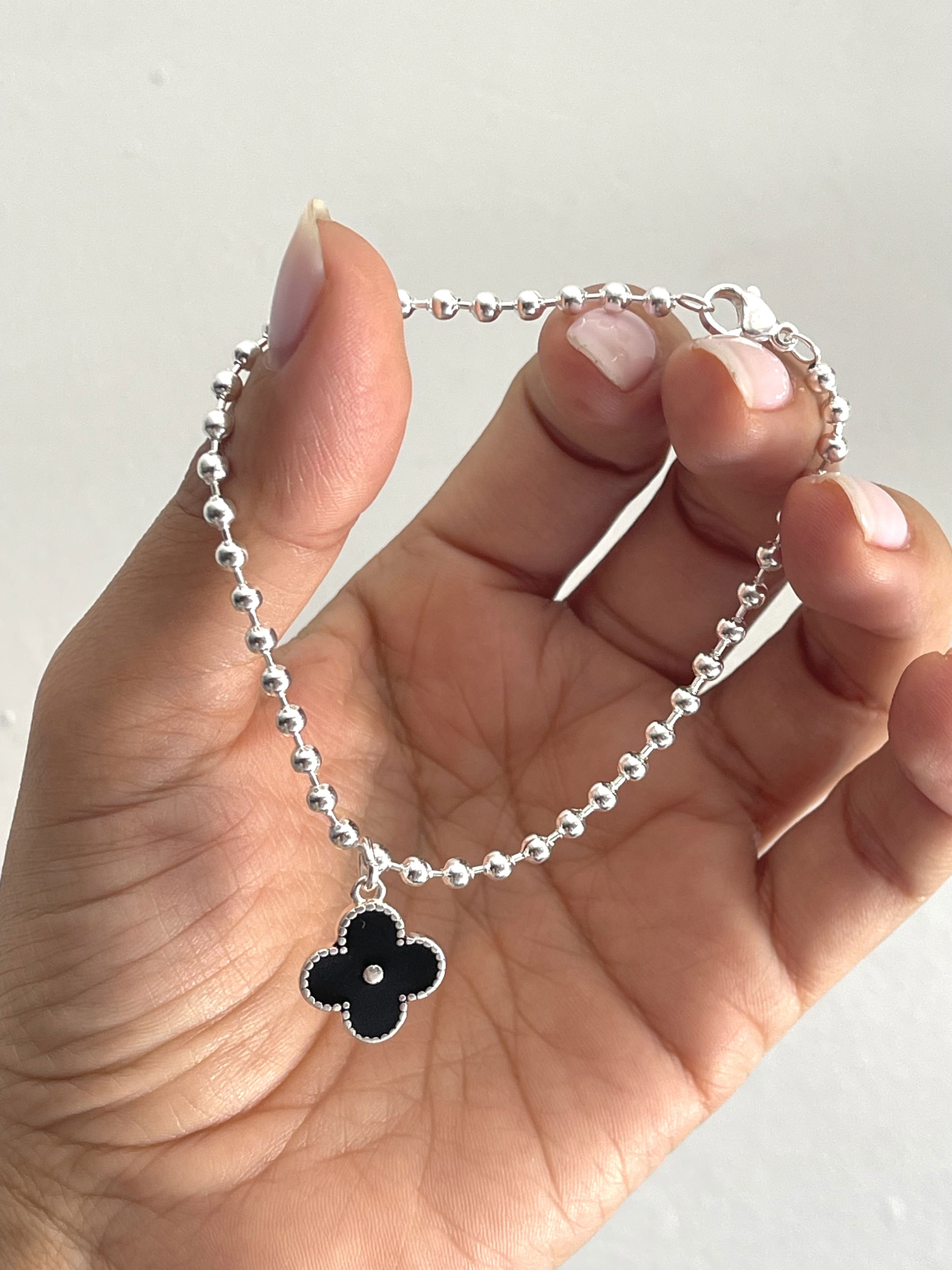 Pulsera microbolitas con dije trébol negro ( lucky clover )