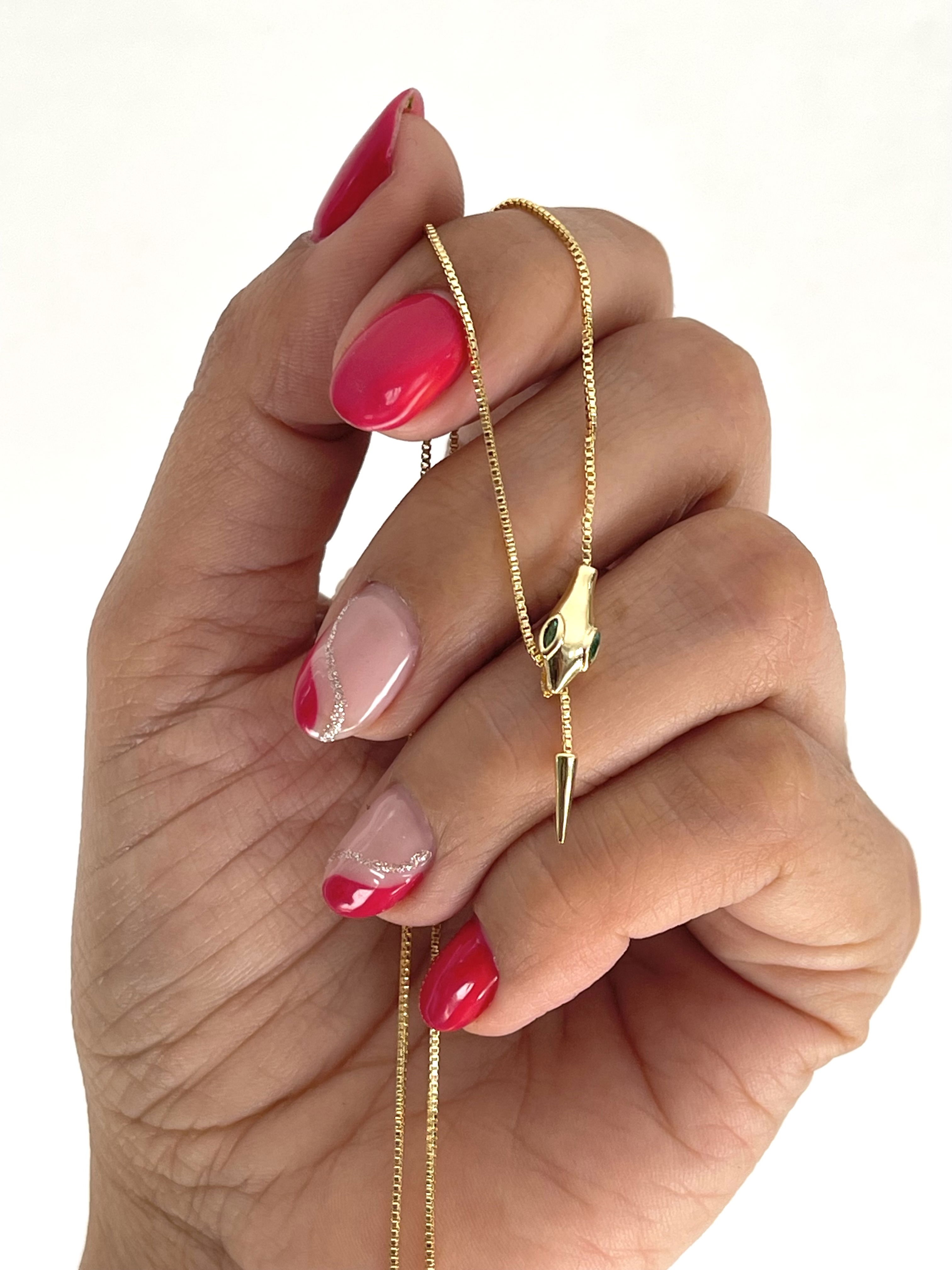 collar Cadena veneciana con detalle de serpiente . Dos opciones de uso como cadena y corbatero .