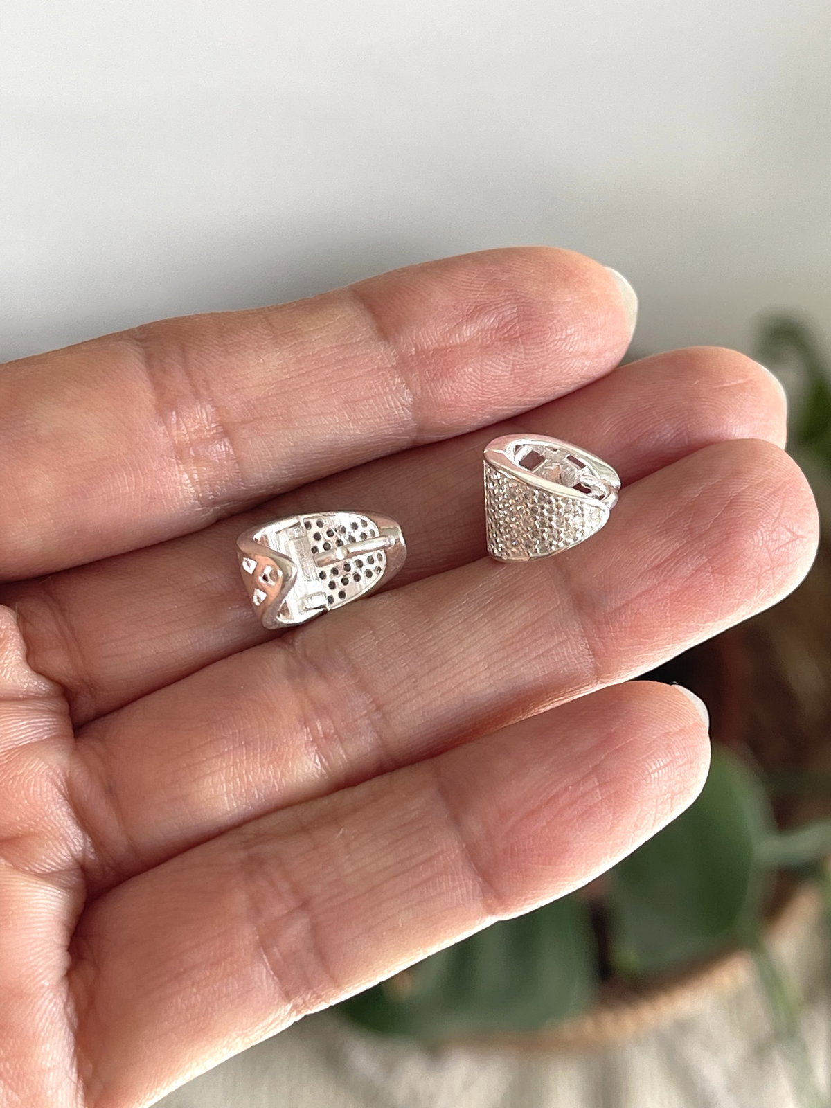 Argollas minis cirrre Huggies con micropave en forma triangular .