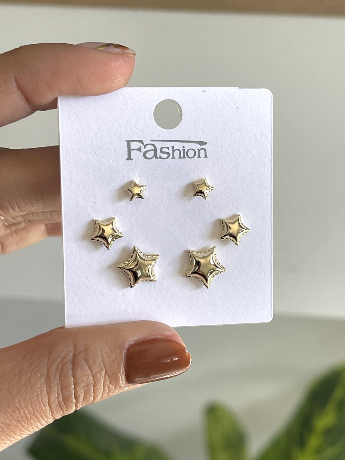 Aros pasantes por 3 pares en forma de estrellas estilo inflados .