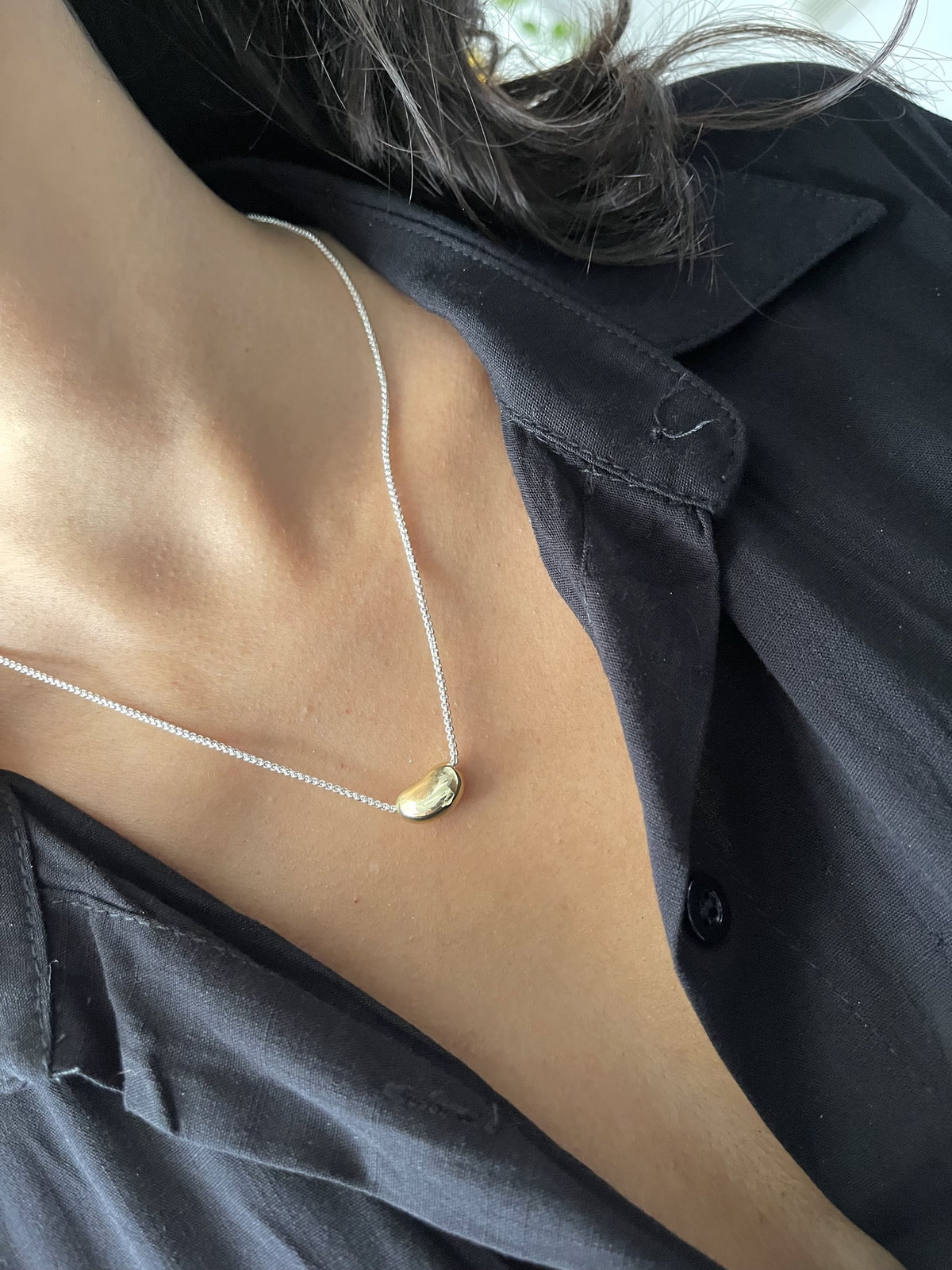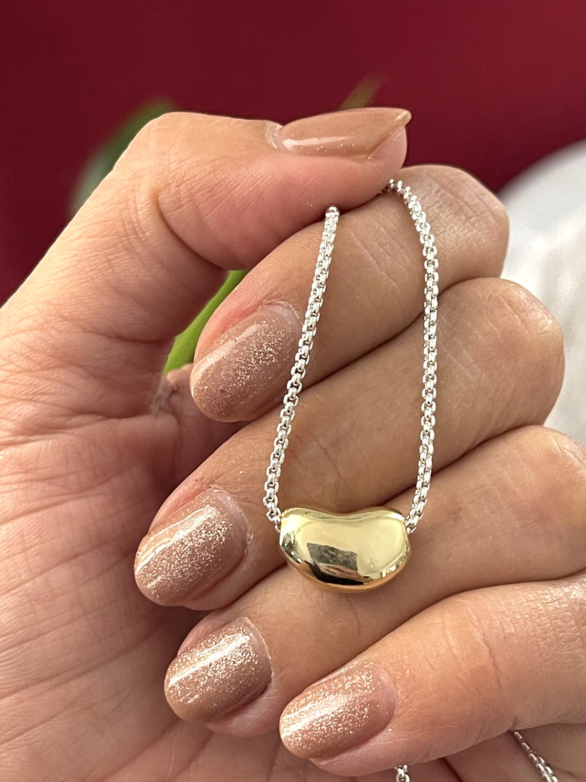 Cadena veneciana de acero blanco con dije túnel en acero dorado .