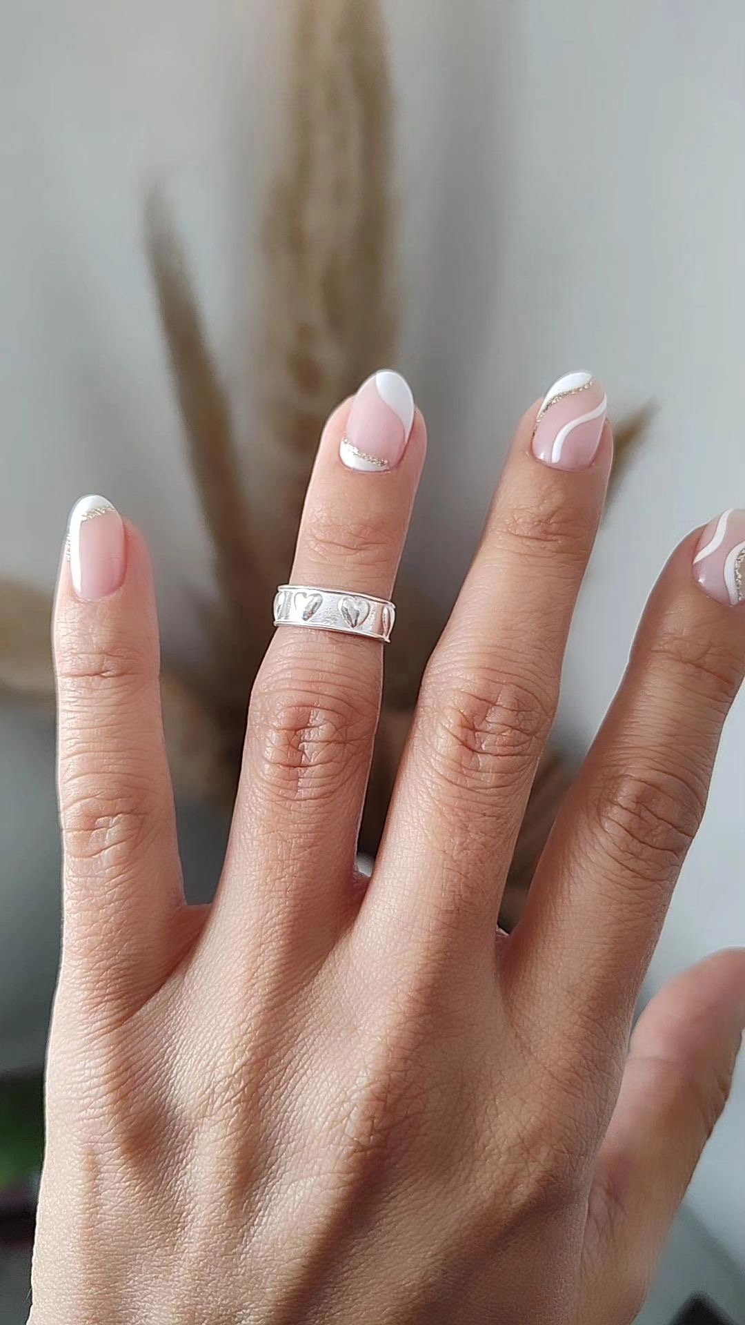 Anillo medio falanges para manos o pies modelo abierto en la parte trasera con corazones en plata lisa