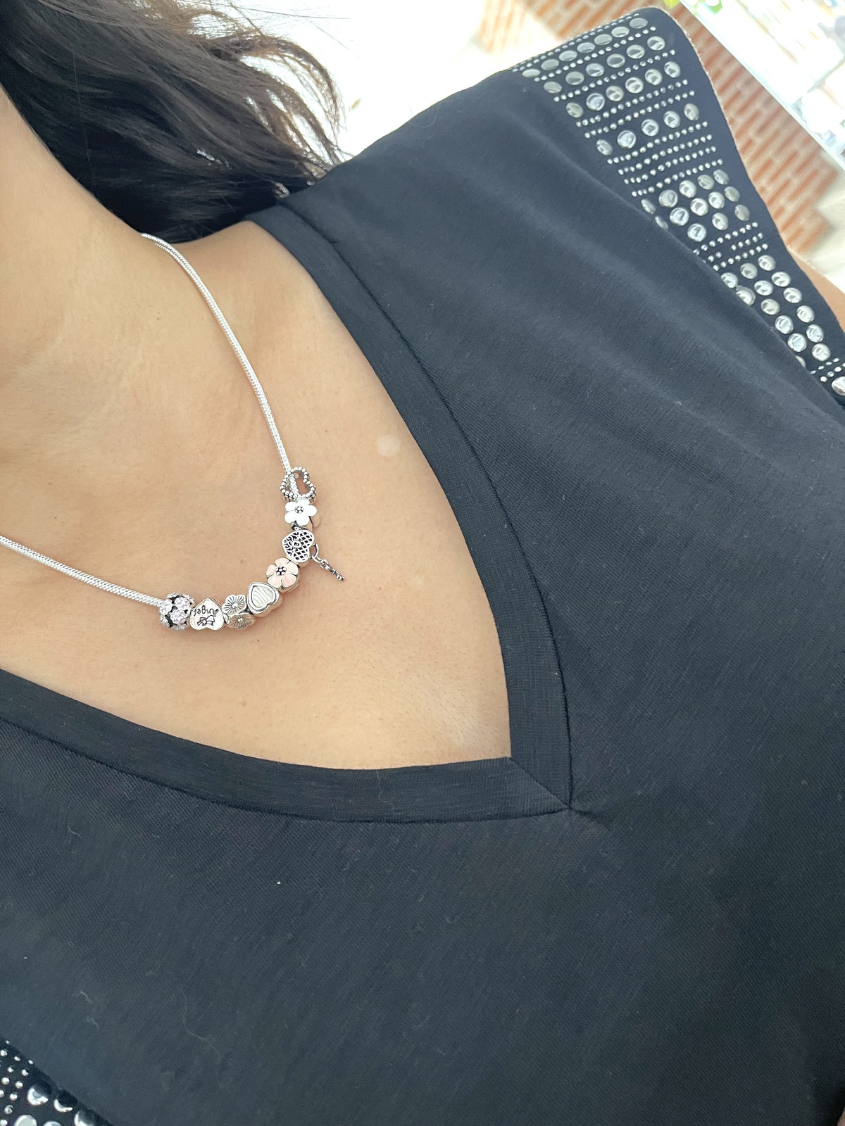 Cadena estilo cola de ratón gruesa con cierre a rosca en la parte del mosquetón para poder ingresar los Charms . vom extensor .