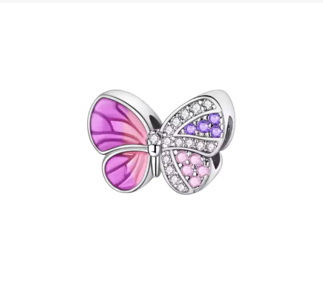 Dije Mariposa combinada con colores tonos rosas y micropave .