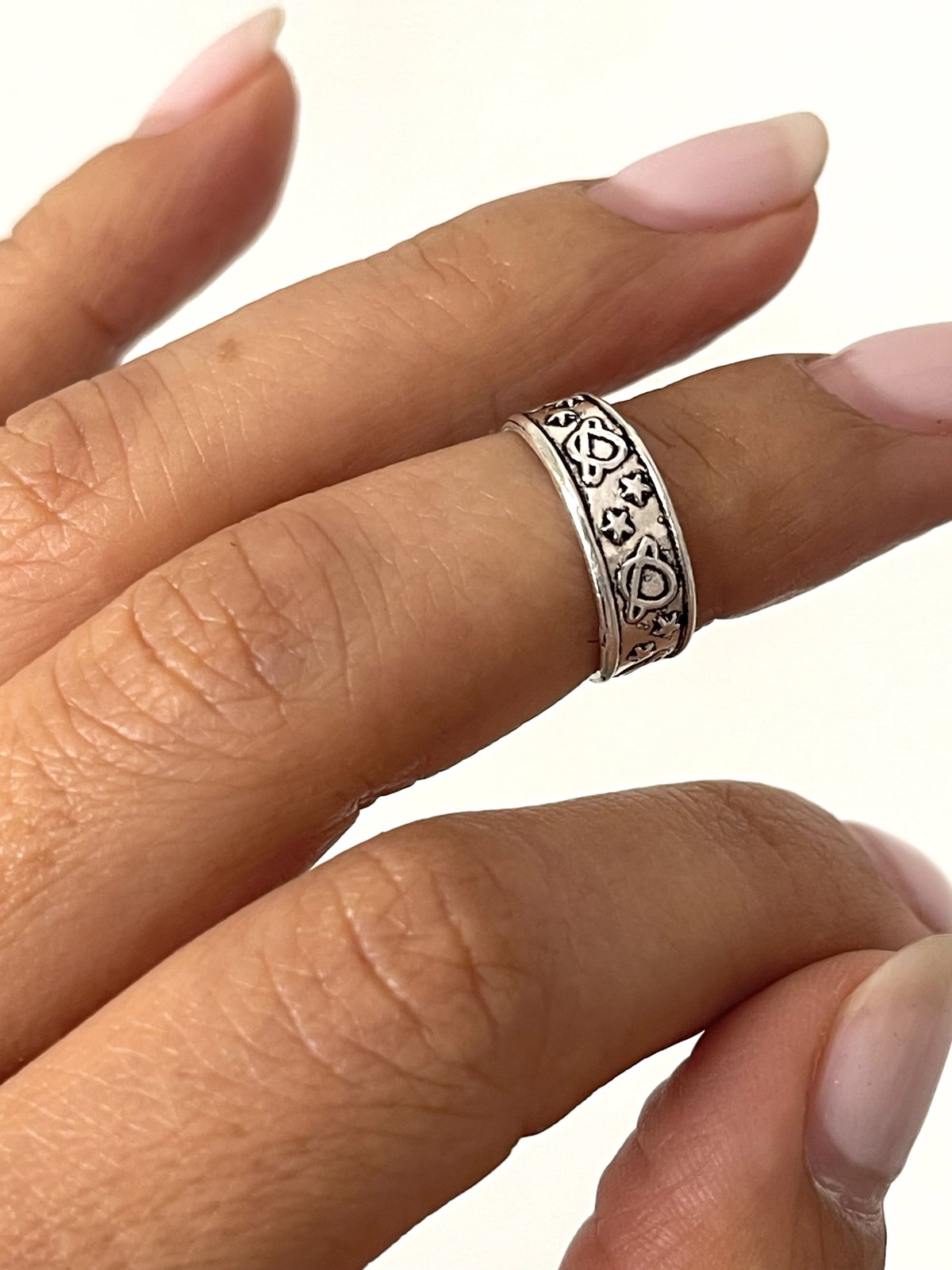Anillo para medias falanges modelo adaptable abierto con diseños de Saturno y estrellas .peso 1.3 grs
