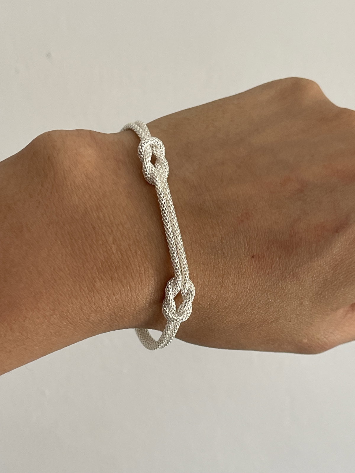 Pulsera modelo canasta . Con dos nudos con 2,5 cm de distancia .