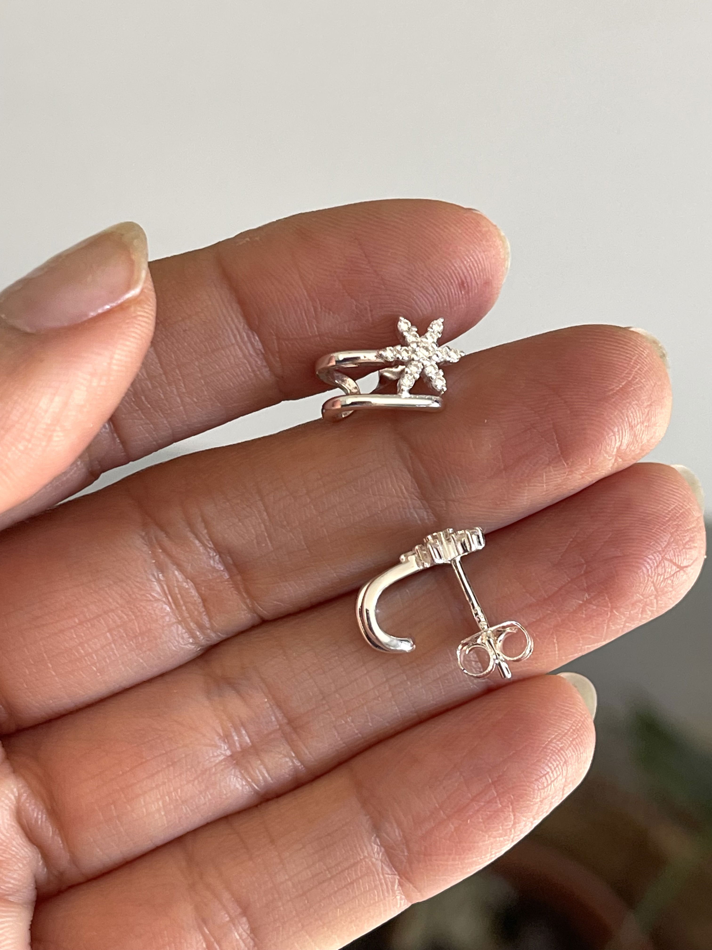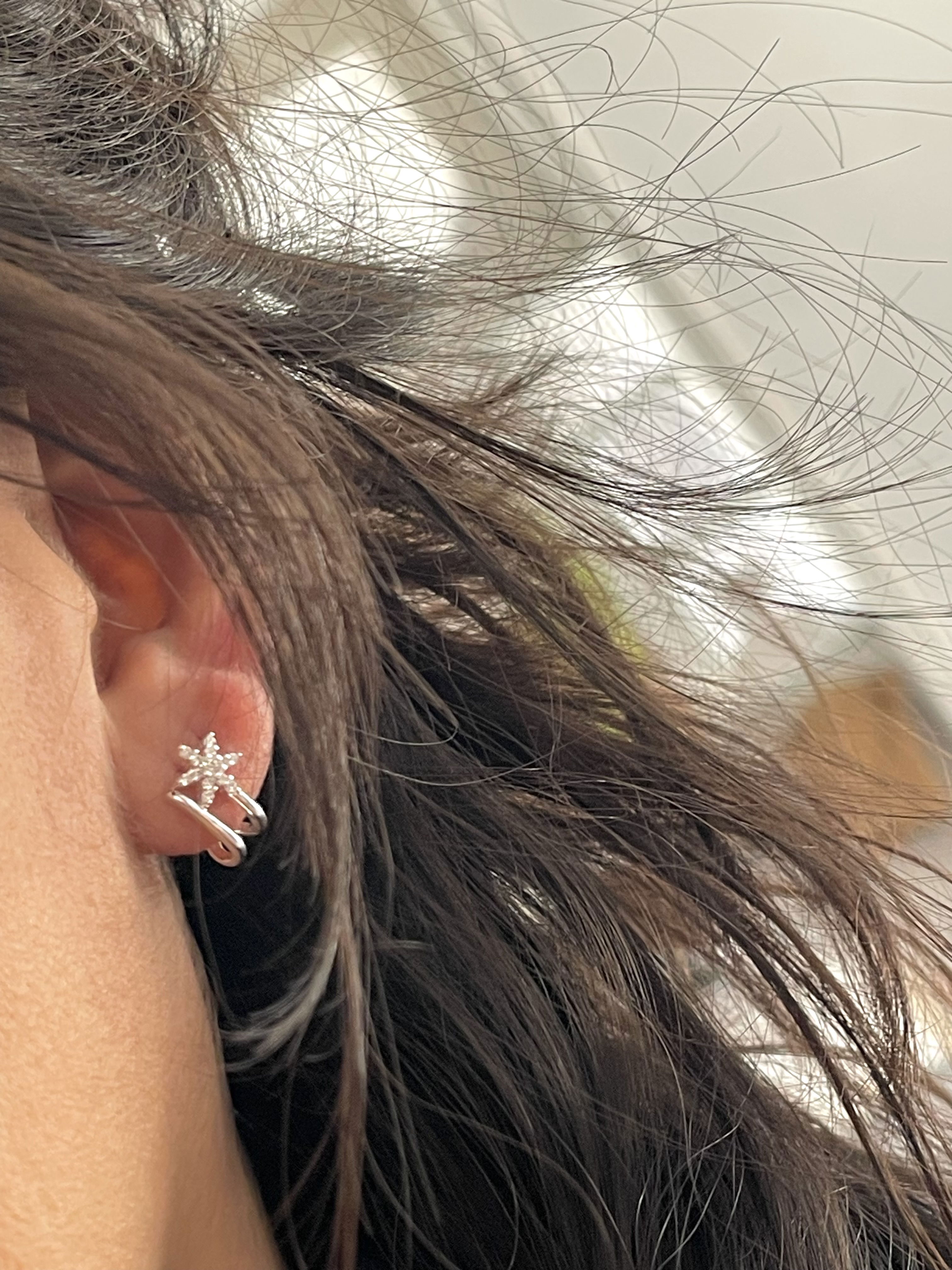 Aros pasantes simula ser doble con detalle de estrella con micropave .