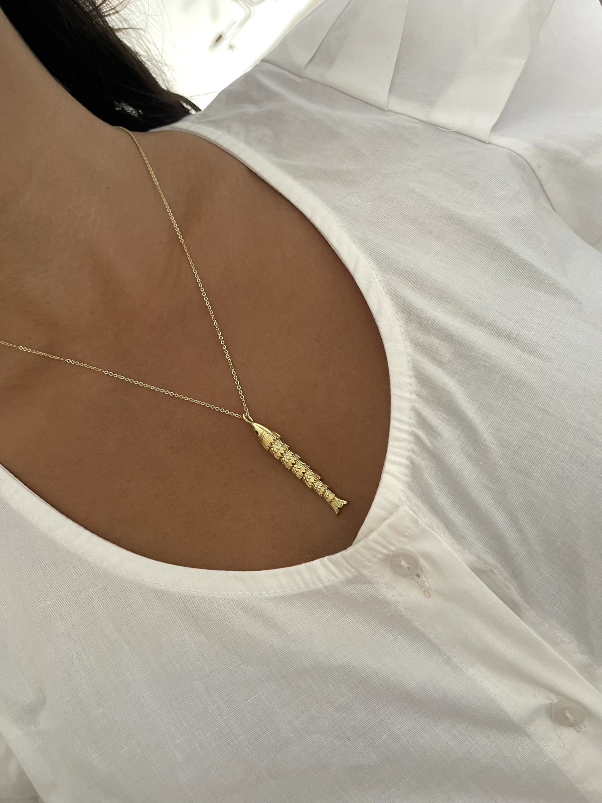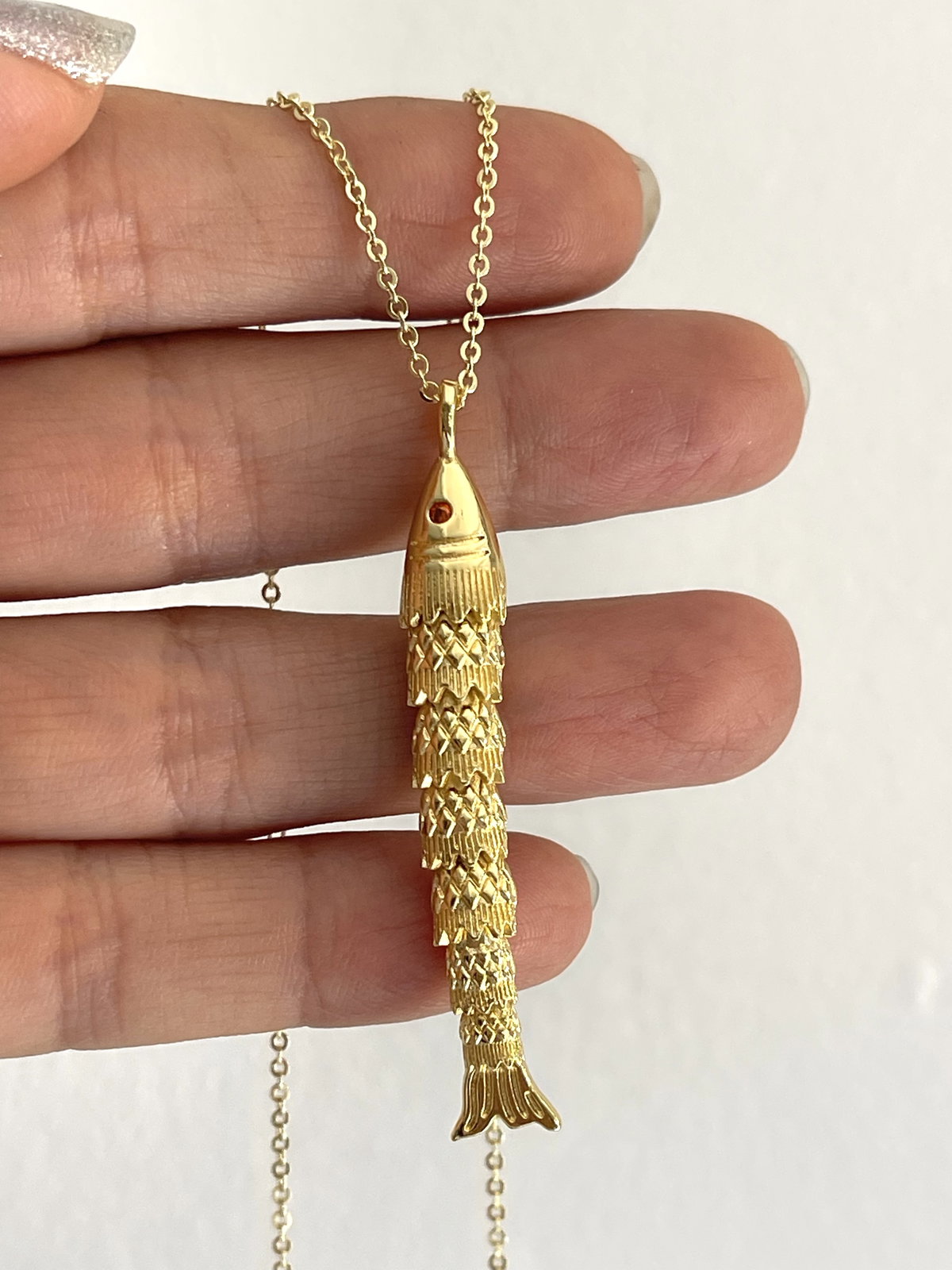 Cadena espejito con dije de pez articulable