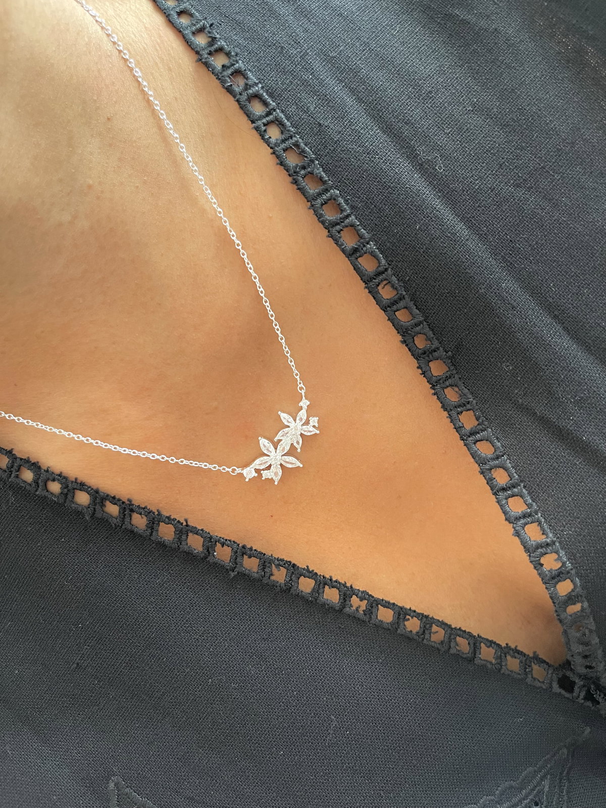 Conjunto cadena con dije de 2 flores .