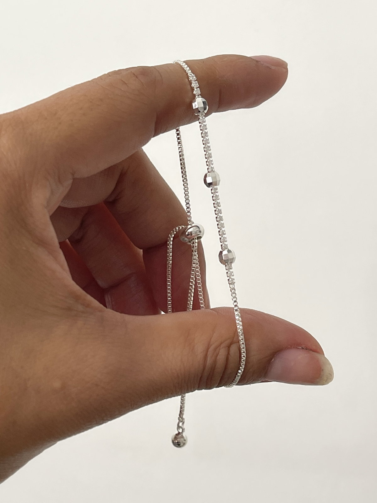 Pulsera con detalles de micropiedras y 3 bolitas distanciadas . Cierre siliconado .